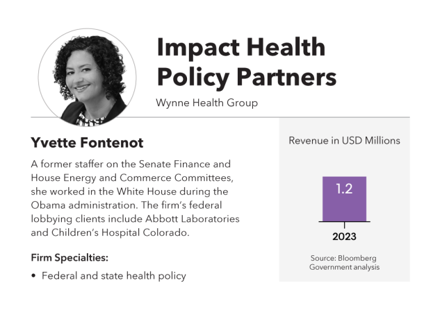 Wynne Health Group’s original identity was centered on its founder, Billy Wynne, a former Senate Finance Committee health policy counsel. In June 2023, the firm changed its name to Impact Health Policy Partners as it brought on board a new chief executive, Yvette Fontenot, with Wynne continuing as chairman.