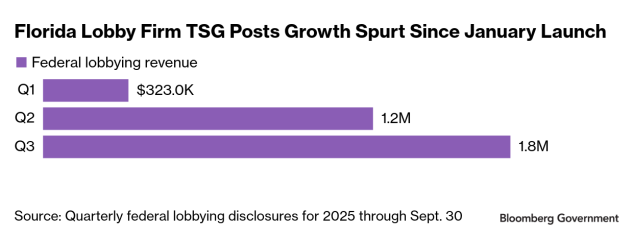 The Southern Group’s lobbying revenue surged nearly 450% between the first quarter of the year and the third quarter, to $1.8 million from $323,000.