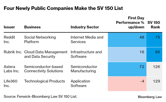 In other analysis articles covering the results of the 2025 Fenwick–Bloomberg Law SV 150 List:
