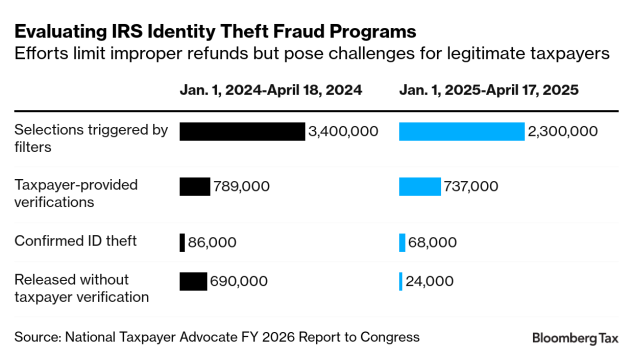 Victims of identity theft also face years-long delays in getting their refunds, with a backlog of 387,000 cases still stuck in review as of April 15, Erin Collins said in the Wednesday report. And the IRS hadn’t received a response to about 1.5 million requests for taxpayers to verify their identity by the close of filing season.