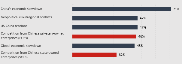 This trend is mirrored in Europe, where 46% of companies report significant pressure from private Chinese competitors, and 32% express concern over the growing influence of state-owned enterprises.