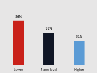 A similar downward trend is evident among European companies in China. Only 31% reported that their profit margins in China exceed their global average. In contrast, the largest cohort (36%) reported an Earnings Before Interest and Tax (“EBIT”) margin in China that was lower than their worldwide performance.
