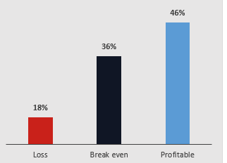 According to the survey data from AmCham China, less than half (46%) of American companies in China are profitable, 36% are just breaking even, and 18% are in a loss.