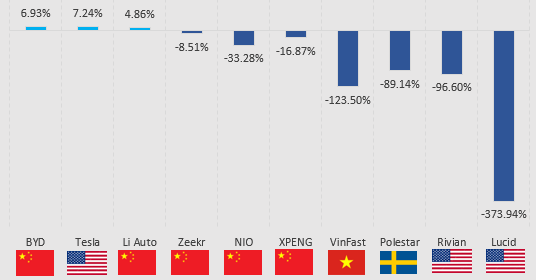Profitability of Global Leading Pure EV Companies (2024, EBIT%)